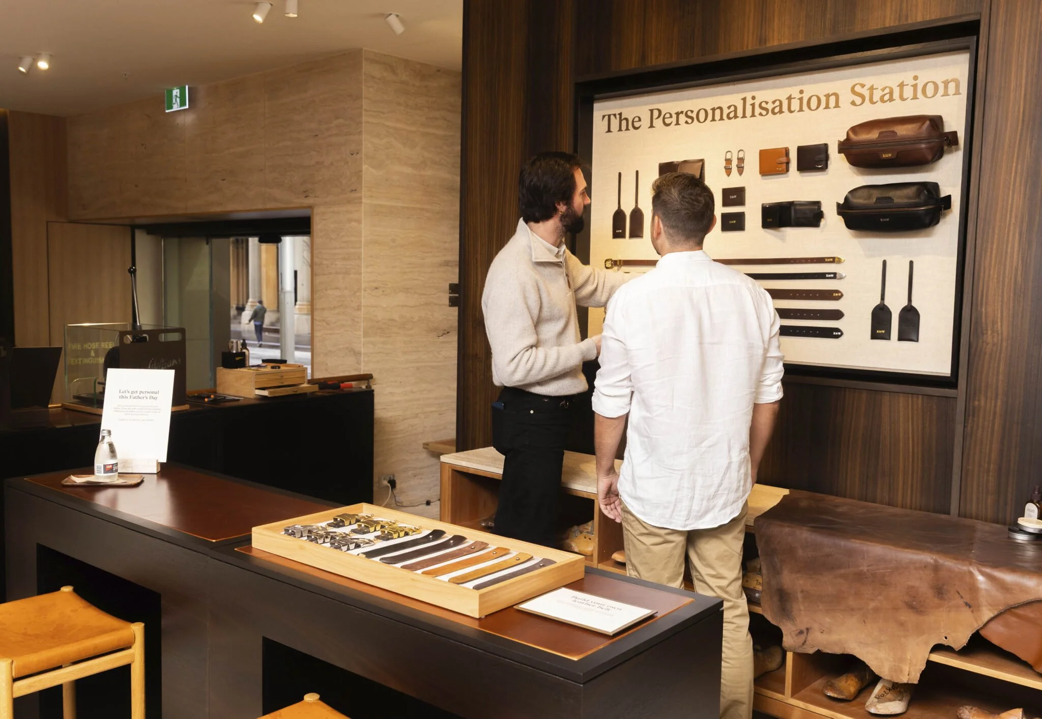 RM Williams elevated their Father’s Day campaign with a tactile in-store experience celebrating the legacy of the Drover Belt. In partnership with Dashing Group, they crafted bespoke plinths and personalisation stations across seven stores nationally, allowing shoppers to create bespoke and memorable gifts.